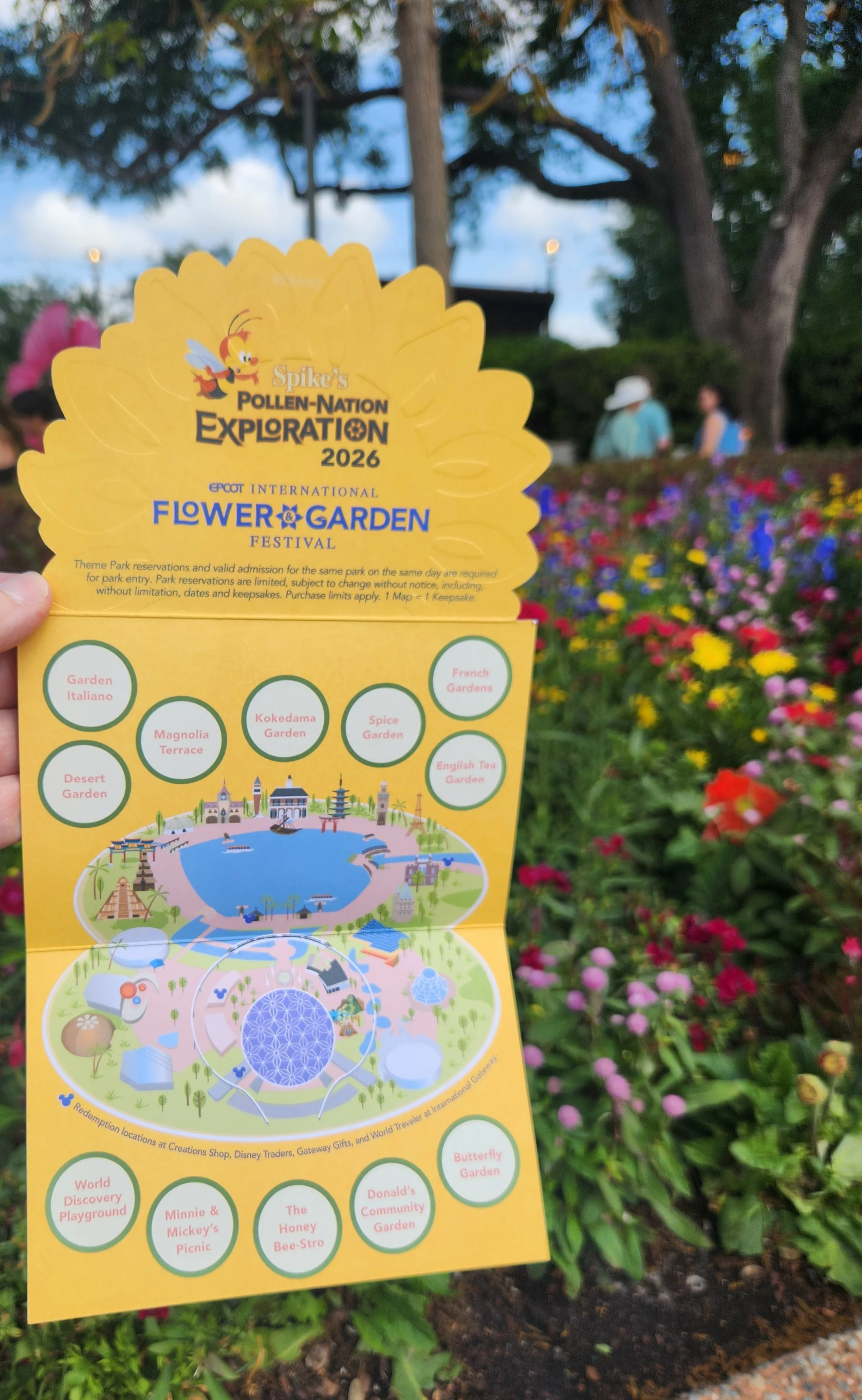 During different festivals and holidays throughout the year, EPCOT offers scavenger hunts that you can complete for a prize. At the Flower and Garden Festival, you’ll find Spike’s PollenNation Exploration, where you search around the park for little Spike the Bee garden stakes and place a matching sticker on your map based on the flower he’s next to.