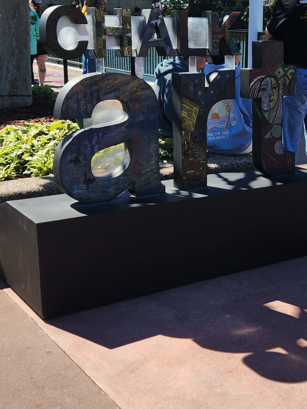 After finding a place to sit down, I checked the time and looked ahead at the crowd levels in World Showcase. I realized that continuing forward with our original plan was no longer an option; we needed to pivot. My husband and I discussed what other options we had. My older son expressed interest in riding Spaceship Earth, so we ultimately decided to skip the mural, food booths, and scavenger hunt for today and make our way back towards the front of the park.